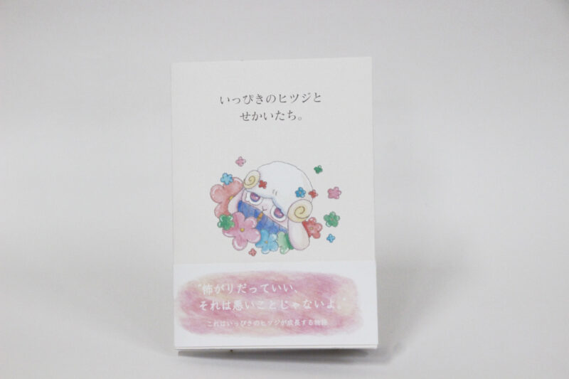 「心の成長」をテーマに、オリジナルキャラクターと物語を通して、内面の変化や感情の揺れを丁寧に描いた。主人公のヒツジと周囲の存在との関わりの中で、支え合うことの大切さや、人と人との間に生まれる温もりを表現している。 絵本作品『いっぴきのヒツジとせかいたち』の世界観と統一したデザイン展開により、日常にそっと寄り添う存在を目指した。 さらに、グッズや空間展開も視野に入れ、物語の世界が生活の中に自然に溶け込む体験を提案している。 本作品が、読み手の心にそっと寄り添い、前を向くためのきっかけになることを願っている。