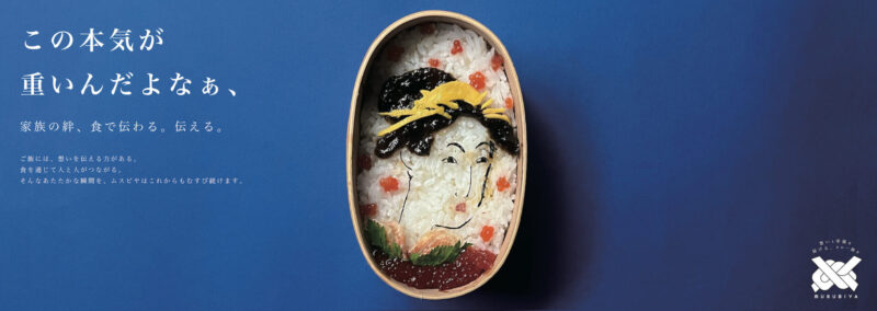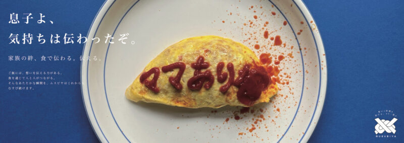 シリーズ2は、総合食品メーカーの広告。この広告では、親子それぞれが、日常的にお互いの気持ちを伝え合うストーリー広告として制作しました。毎日張り切って作る母のお弁当と感謝の気持ちを込めた手作りオムライスをモチーフとしました。デザインはシンプルに料理写真をモチーフにし、バックを深い青にしたことで視界に入り注目してもらえるようにしました。