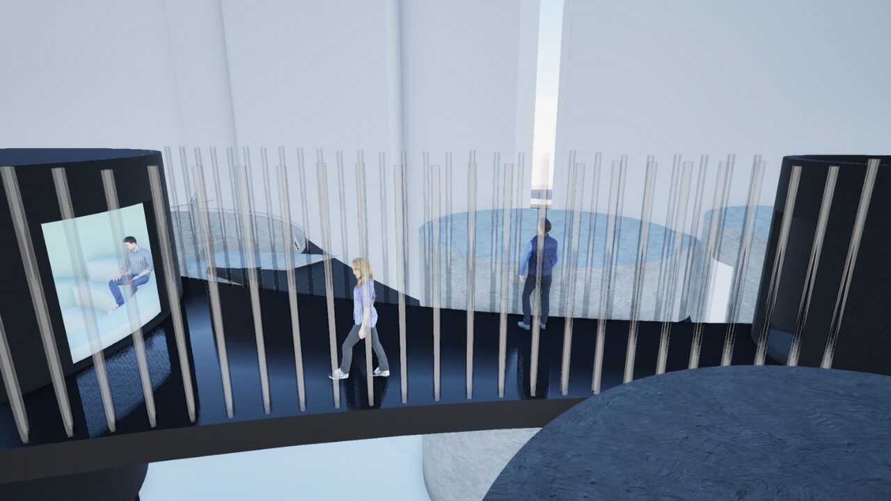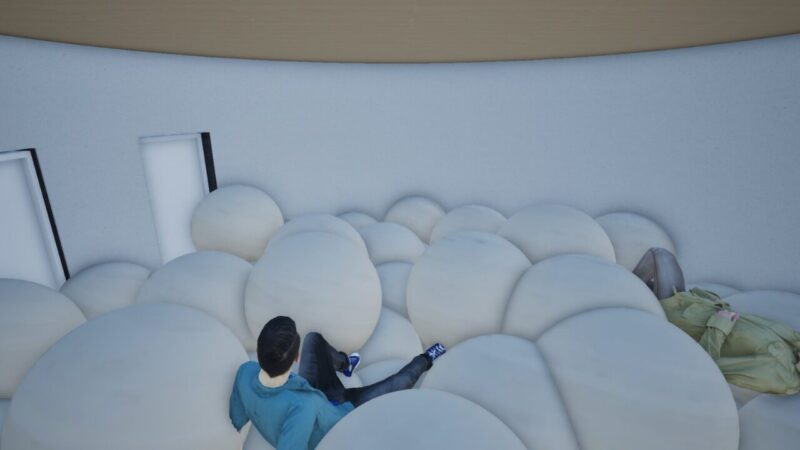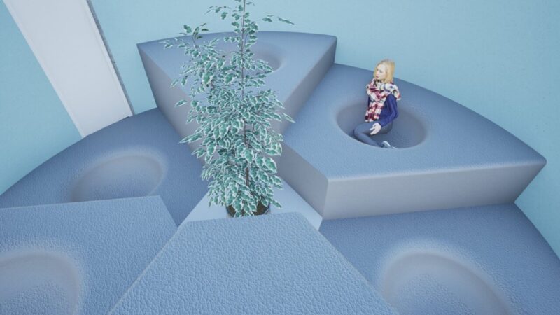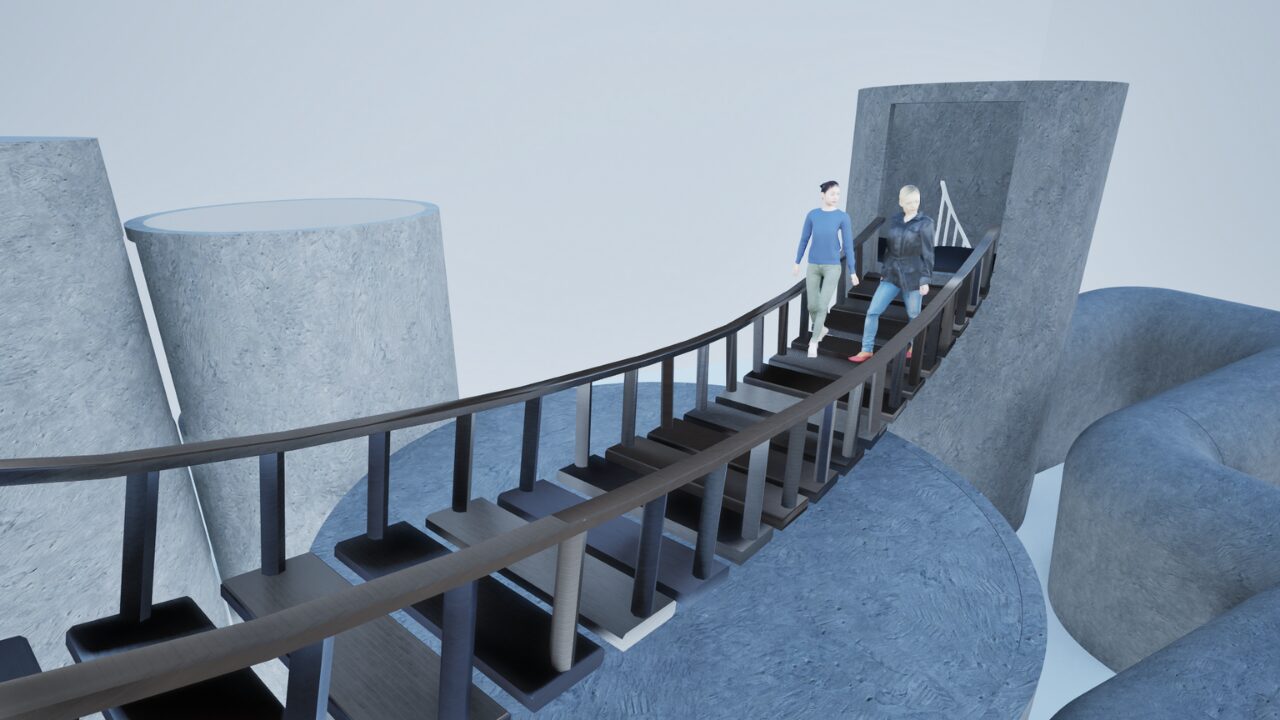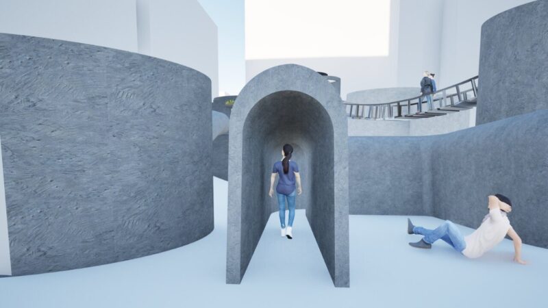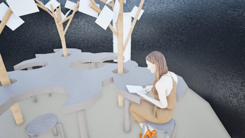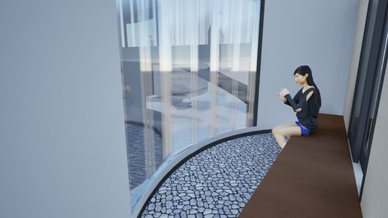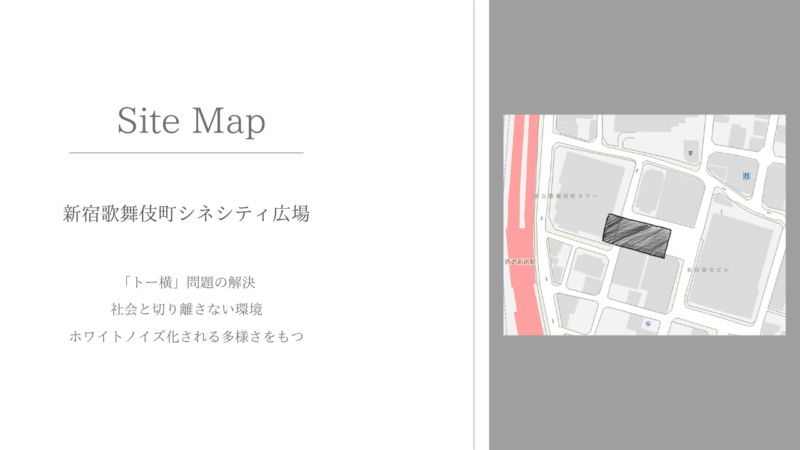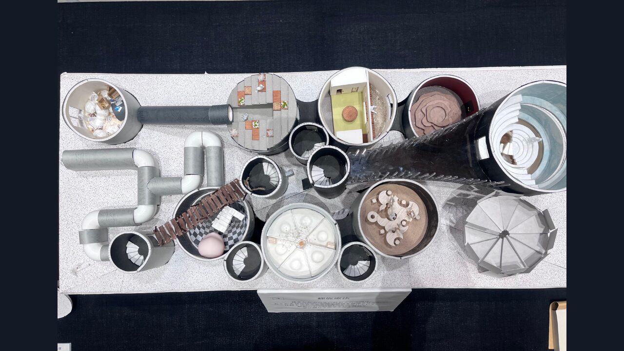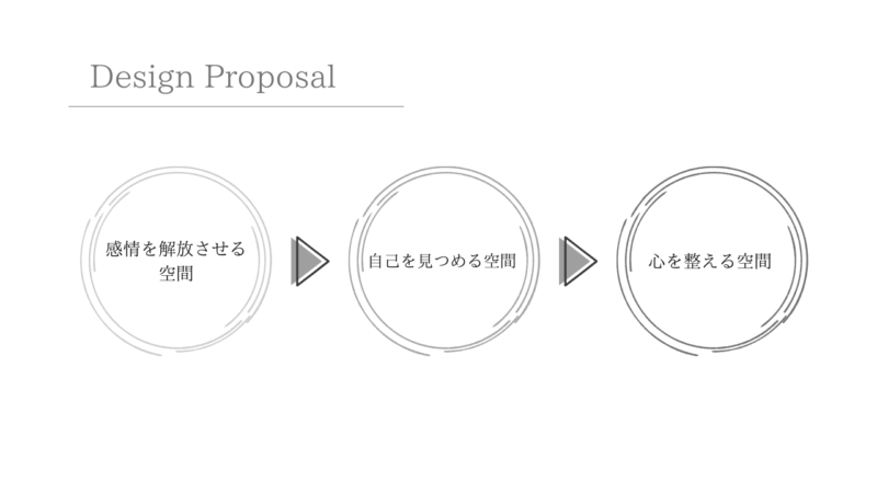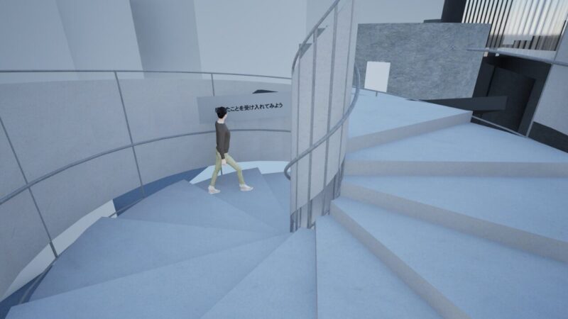 精神的な問題を抱える人々を対象とした体験型療養施設の提案。精神療法のプロセスを基に、感情の解放・内省・沈静化へと段階的に巡ることで、治療 の「0 段階」となる場を目指した。 敷地には、ケアを要する人々が現代社会で最も顕著に現れる新宿シネシティ広場を選定。心を動かす自然現象をモチーフに、感情の循環や回復の過程、そして雑多な都市の中で柔らかく人を包み込む様子を「螺旋」というコンセプトで表現している。