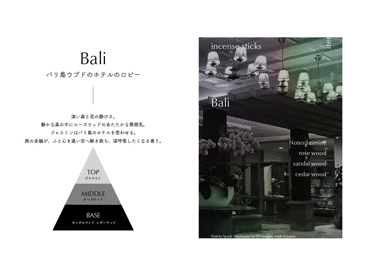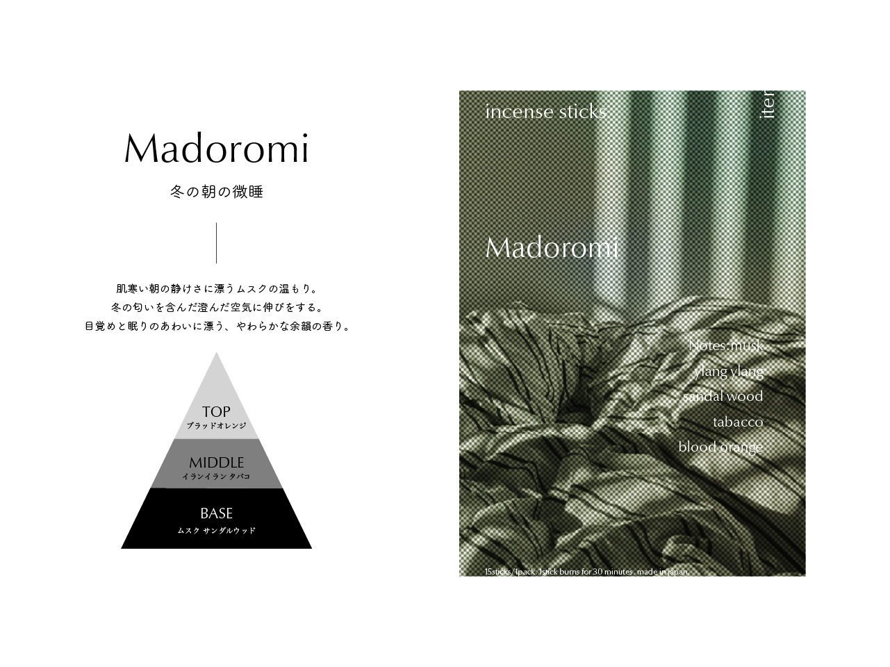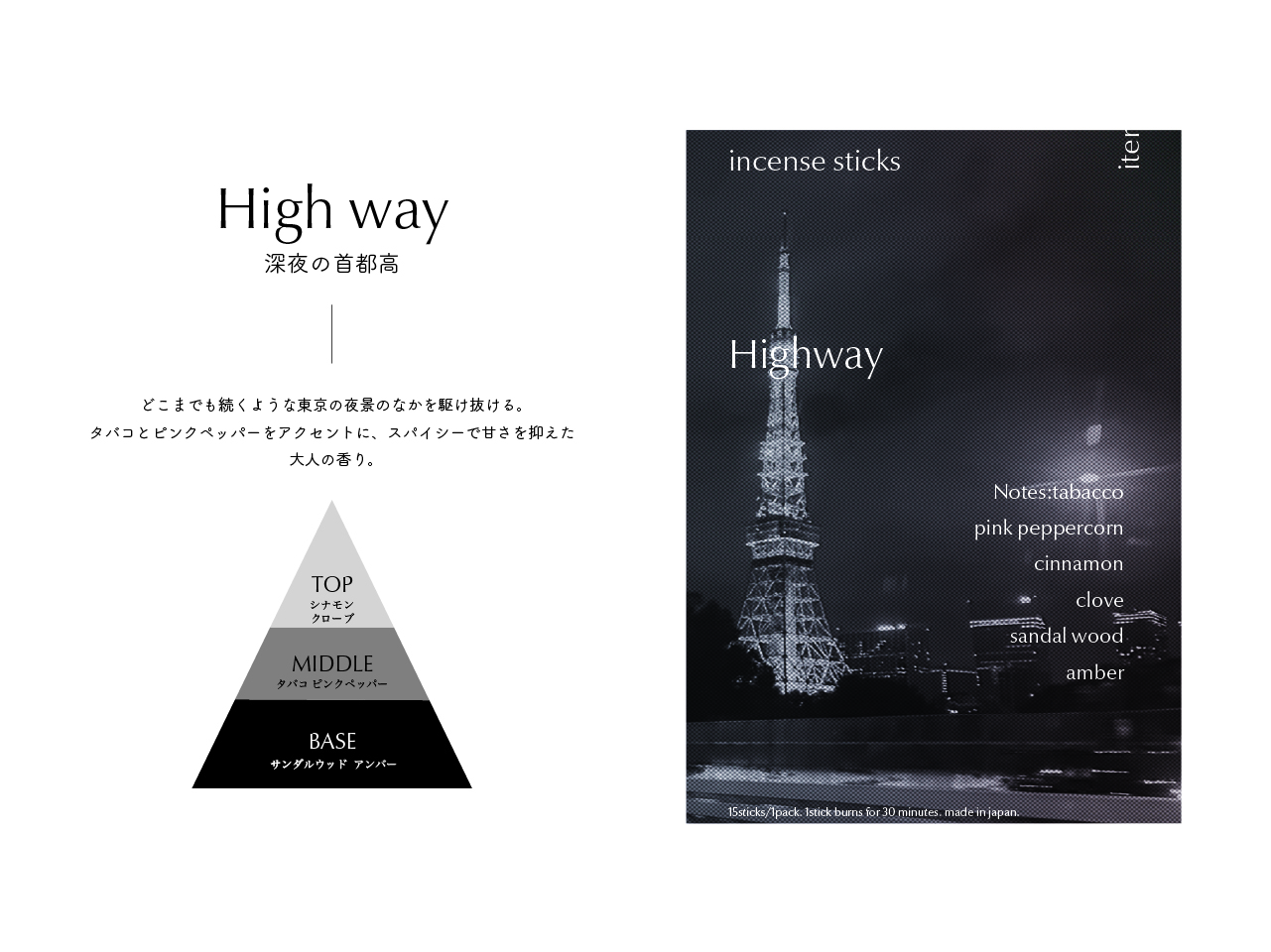 ふとした瞬間に感じた香りで過去の記憶が呼び起こされる感覚を、焚く過程で五感に働きかける体験が伴うお香としてかたちにした。 お香ブランド“iter”のコンセプトは、「非日常のひとときも、ふとした懐かしさも、香りが呼び起こす記憶はあなただけの宝物になる」。大学生活の集大成として、”今だからつくれるもの“をと、4年間の記憶の中で特に印象に残っている6つの香りをオリジナルで調香し、成形したお香とパッケージを制作した。