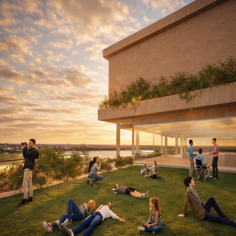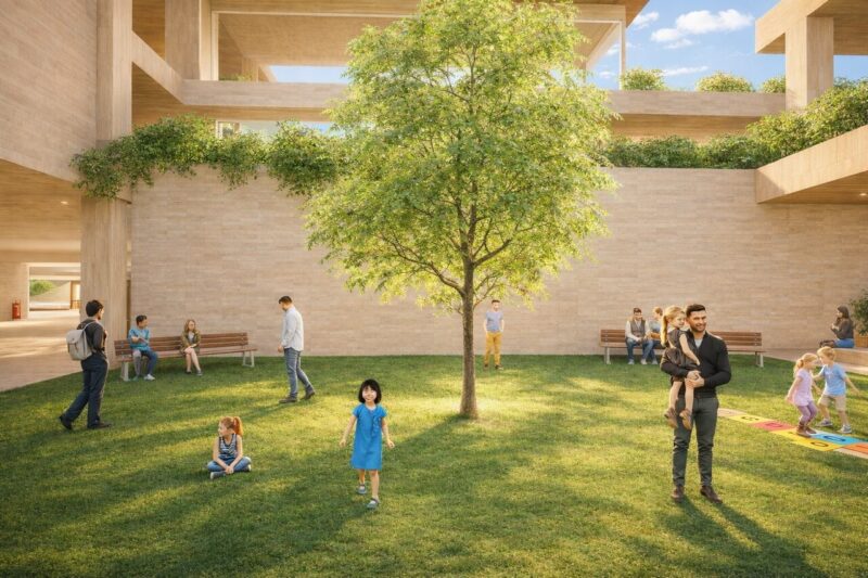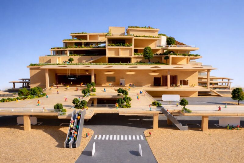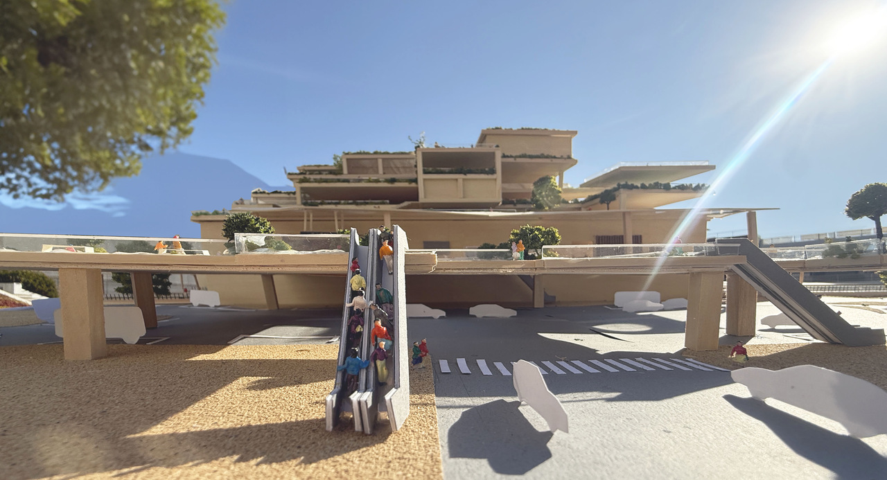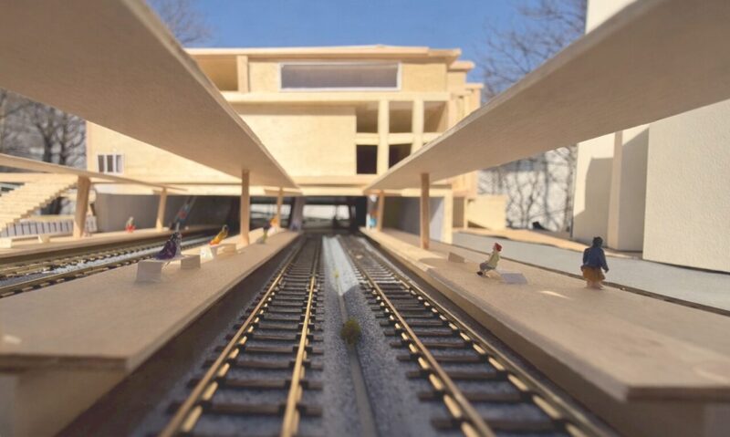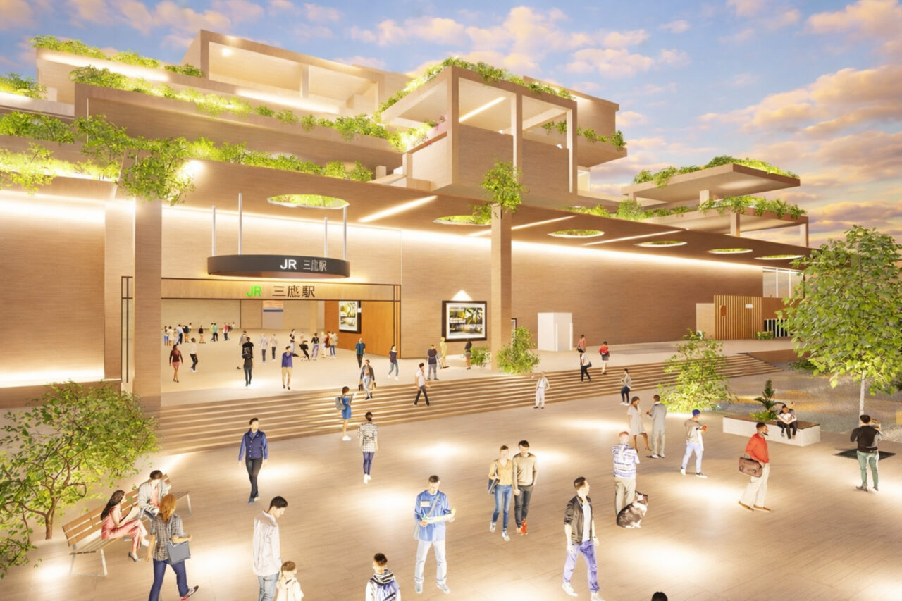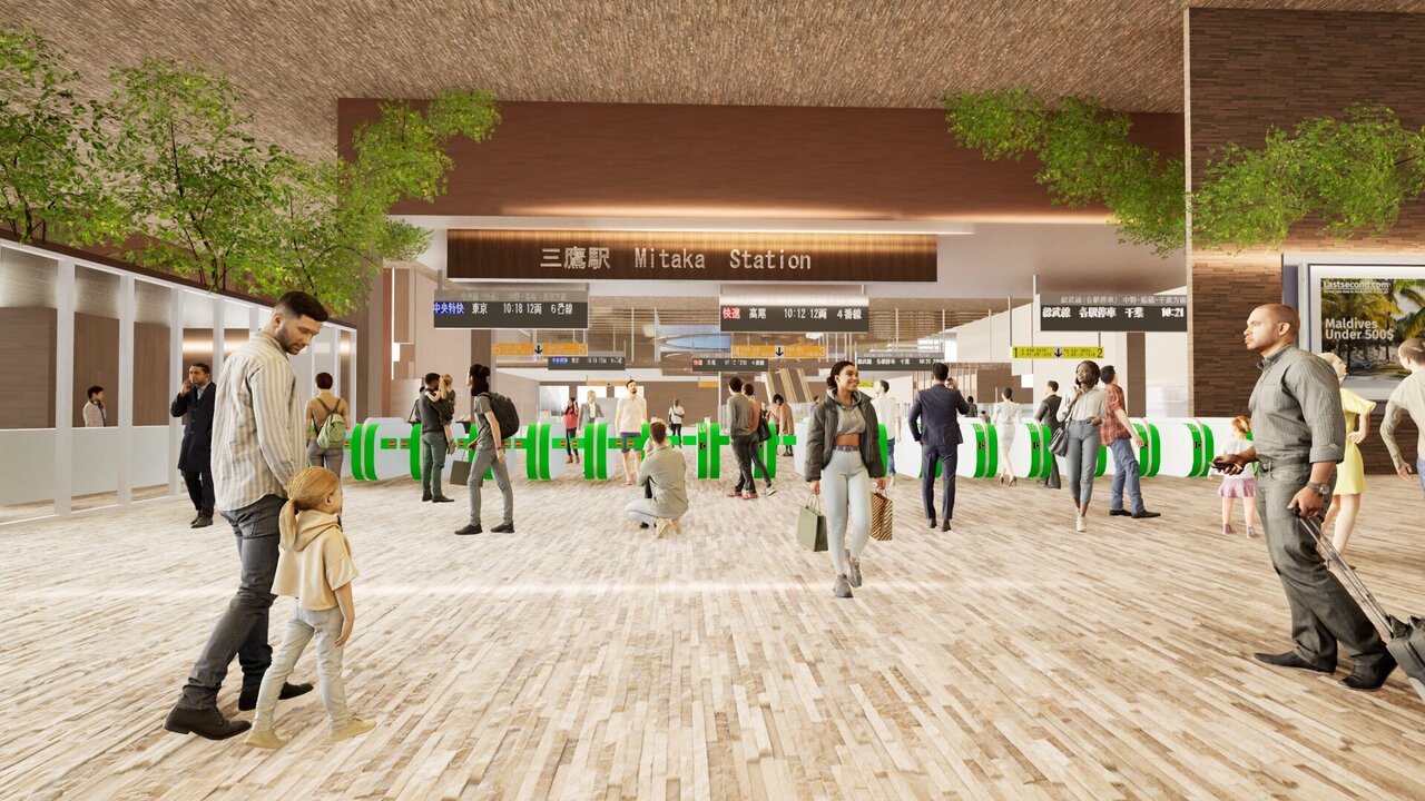 本計画は、三鷹駅を「通過する場所」から「滞在したくなる場所」へと再生する提案である。多摩産材を用いた木質空間と緑を取り入れ、駅全体を森のように構成した。高低差のあるスキップテラスによって、移動の中に発見や立ち止まるきっかけを生み出し、人と人、日常と自然が緩やかにつながる駅を目指している。三鷹らしい穏やかさを守りながら、新たな居場所となる駅のあり方を示した。