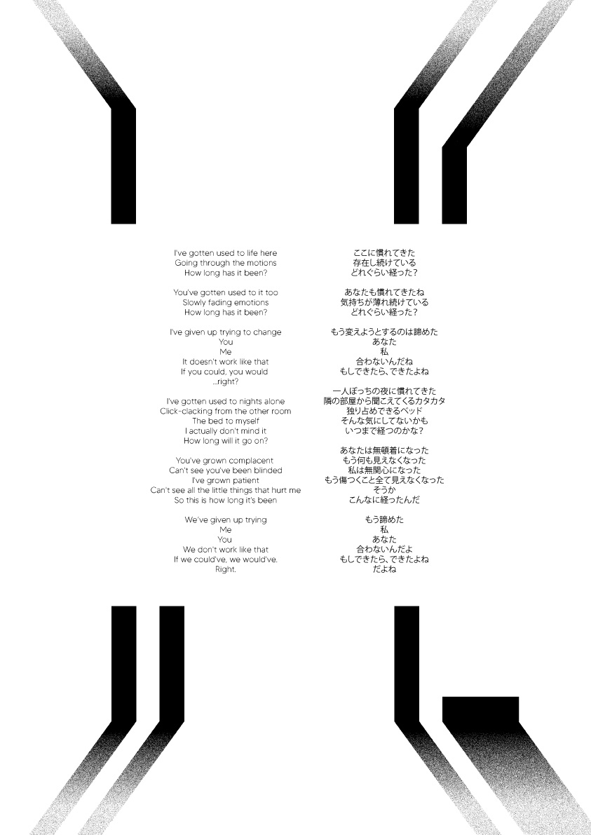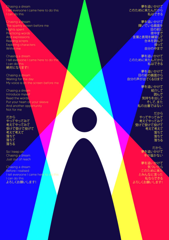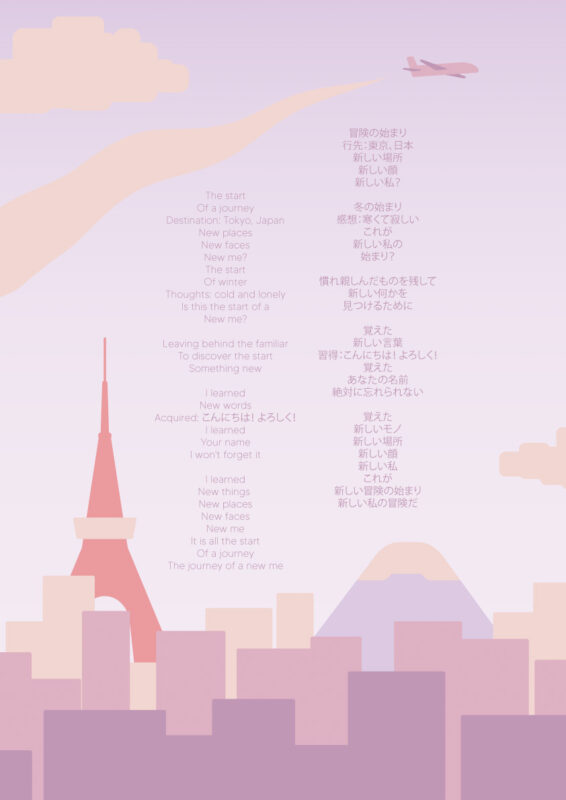 もうすぐ帰国する留学生が日本での生活、経験、思い出を振り返る。楽しいことも辛いことも。日本での6年間が全部注ぎ込まれた実写とモーショングラフィックスアニメーション作品である。 研究テーマは、モーショングラフィックスを使った抽象的な表現の中で、ストーリーを効果的に伝えるための演出などの研究である。 モーショングラフィックスの動きはもちろん、イラストから音楽まで研究した。