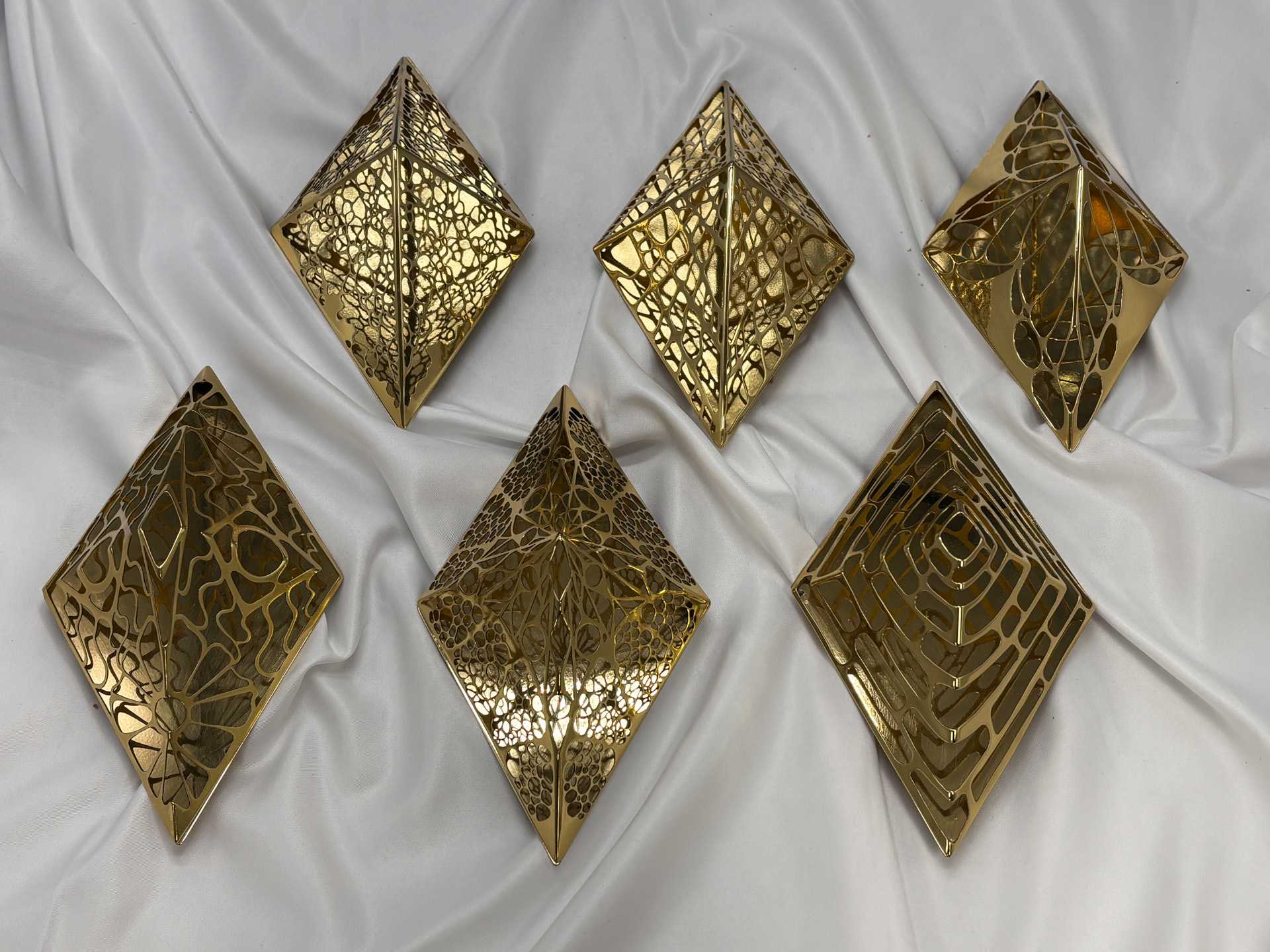 日常生活に溶け込むアートを目指してデザインした。日本家屋ではアートを置くためのスペースが限られていることが多いので誰でも手軽に日常の中でアートを楽しめるように場所を選ばずに取り入れられる壁掛けタイプにした。 本作品では自由に組み合わせられるよう6種のデザインを制作し、それぞれ異なるモチーフや表現方法を取り入れた。