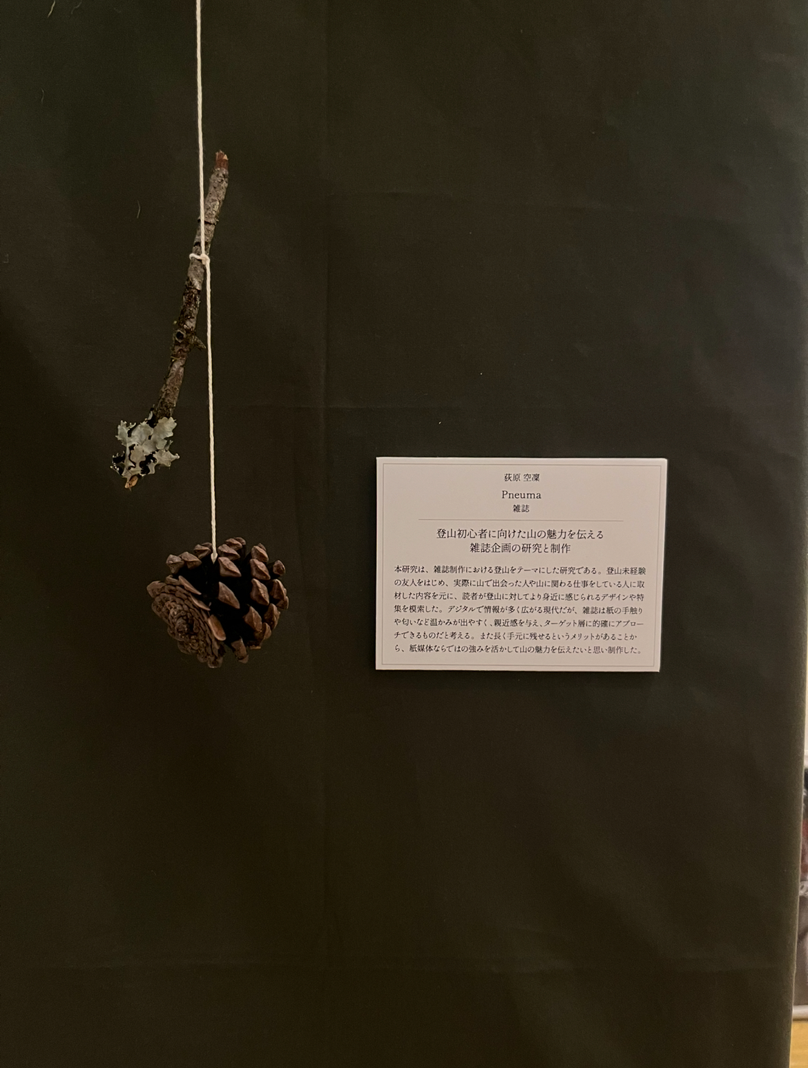 「登山経験の有無関係なく、山で話した人との言葉や写真を通して、山の空気感や心地よさを感じてほしい」という思いから制作した山雑誌。登山未経験の友人と山に登った体験談をはじめ、山頂で出会った人や山小屋で働く人などにインタビューをし、様々な特集を収録。読むことで山を登ることへの不安が和らぎ、山に出会うきっかけや興味の一歩につながる一冊となっている。