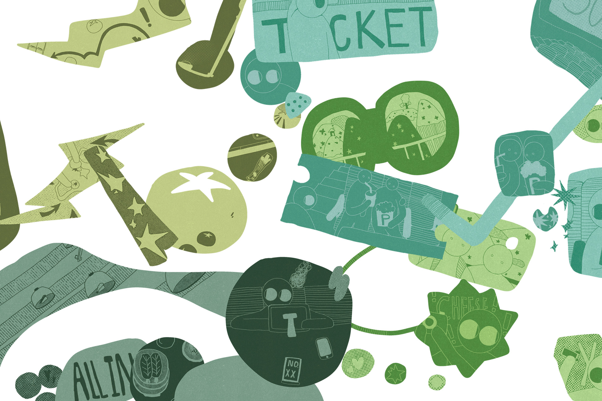 色系に分けたイラストの展開(非線形構図)