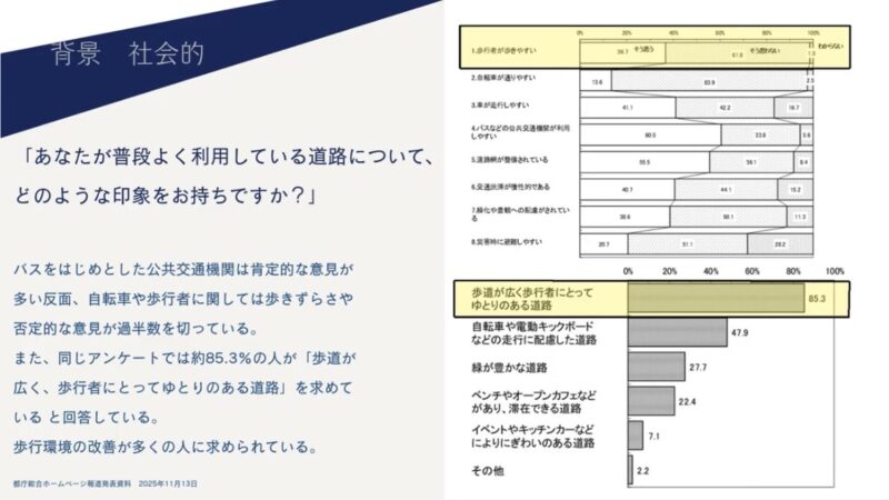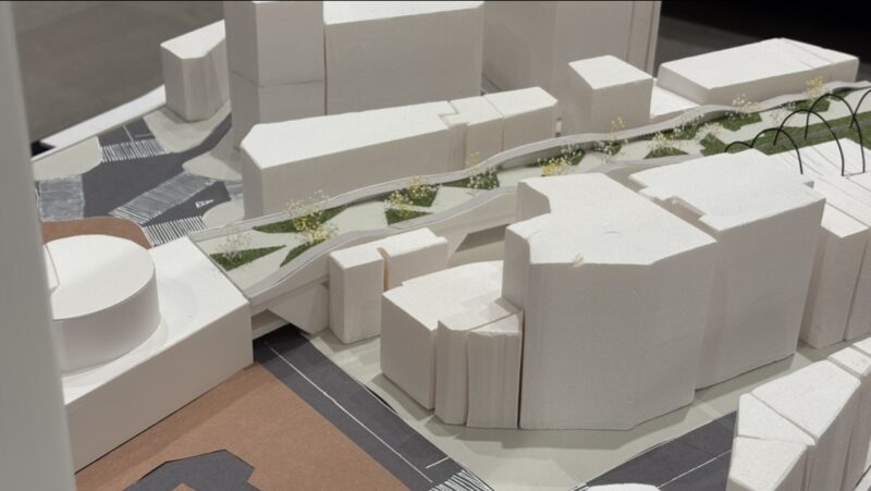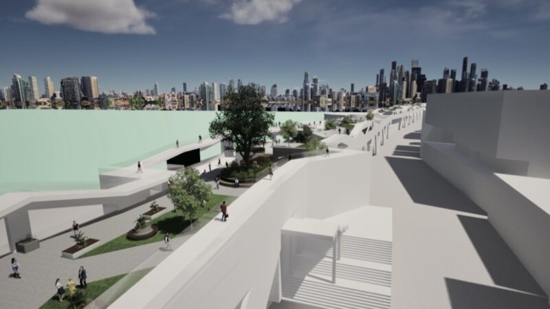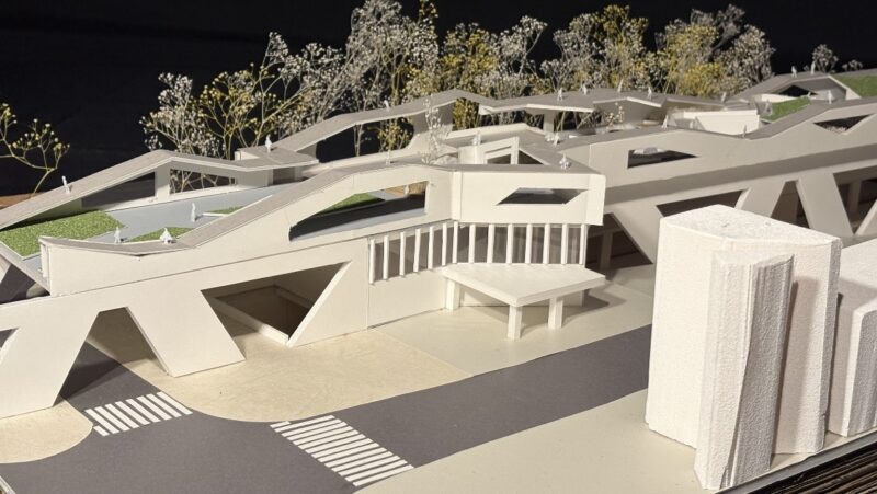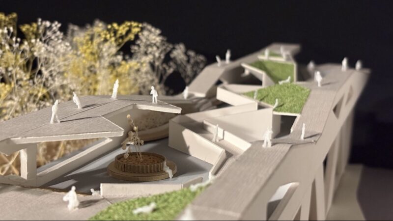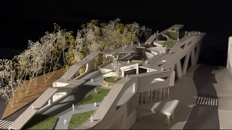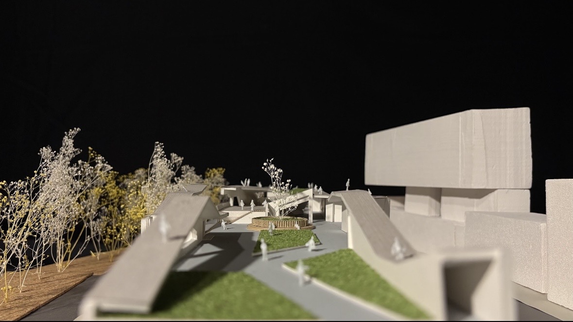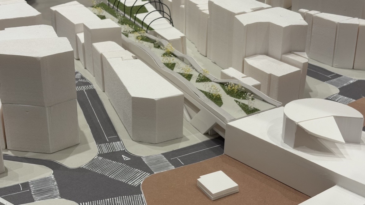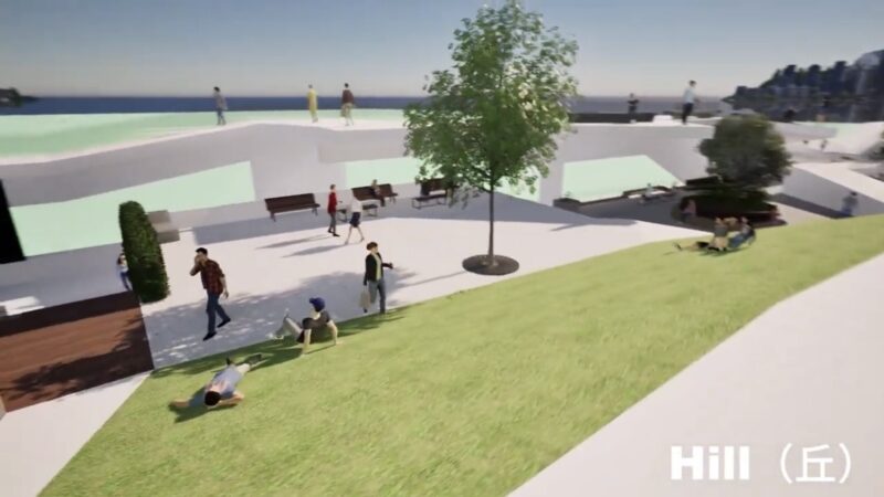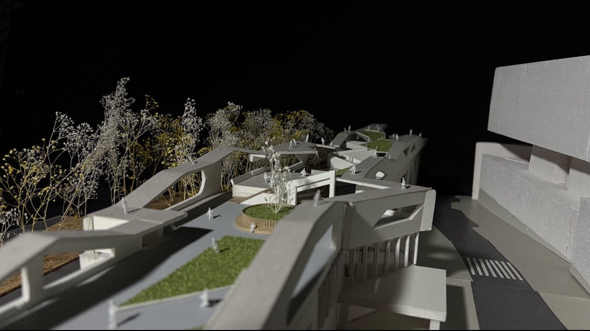 東京の都市空間は常に歩き続けることでそのキャパシティを保っている。一方で、立ち止まり、呼吸し、空を見上げるための余白は驚くほど少ない。再開発が進み、地上空間がますます過密化する都市生活者に遮るもののない空への眺望を取り戻し、ストレスフリーな歩行者ネットワークを創り出す。山手線上空約7mに展開するこの屋上は、都市の混雑や騒音から距離を取りつつ、歩行と滞在をシームレスに連続させることで、歩くことそのものが体験となる都市の点と点を結ぶ道となり、偶発的な出会いや活動を受け止める文化の場となる。